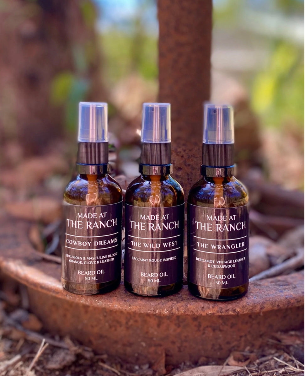 Take your grooming game up a notch with our premium fragranced beard oils, available in three masculine scents: Cowboy Dreams, The Wrangler, and The Wild West.